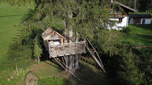Ein ruhiges Grundstück an einem gemütlich plätschernden Bach meben einer Kuhweide irgendwo in Tirol. Ein junges, dynamisches Geschwisterpaar mit den ungewöhnlichen Namen Anique und Üxi. Das waren die ersten Eindrücke, als ich der monumentalen Baumgruppe gegenüberstand , mir die Ideen der beiden für ihr Baumhaus anhörte und sofort wusste, wie wirs machen würden.
