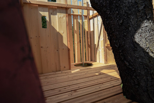 Obgleich seine Äste zum Teil abgestorben sind, ist sein Holz noch stabil genug, um für mindestens 5 Jahre ausreichend Stabilität für ein Baumhaus zu bieten. Danach muss jährlich überprüft werden, wie weit der Absterbeprozess vorangeschritten ist.